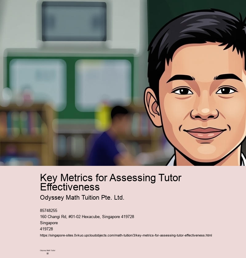 Key metrics include student improvement in grades, understanding of mathematical concepts, feedback from students and parents, tutors ability to engage students, and success in exams like PSLE, O-Levels, or A-Levels.